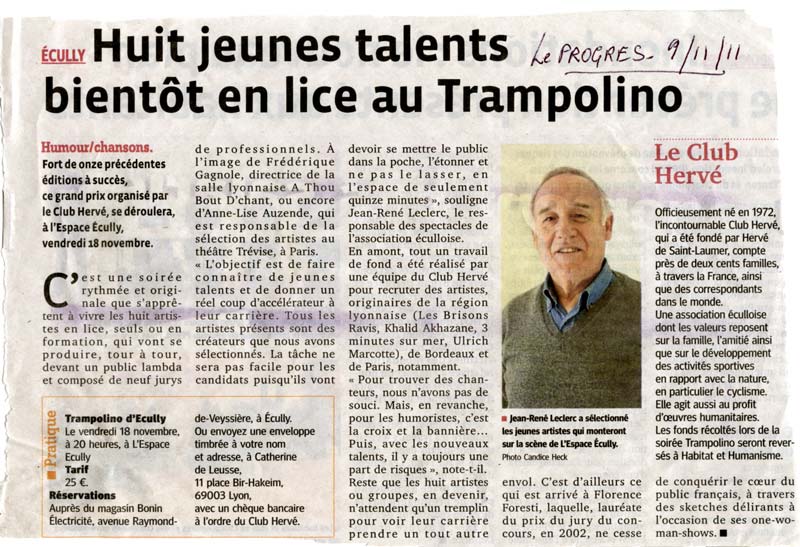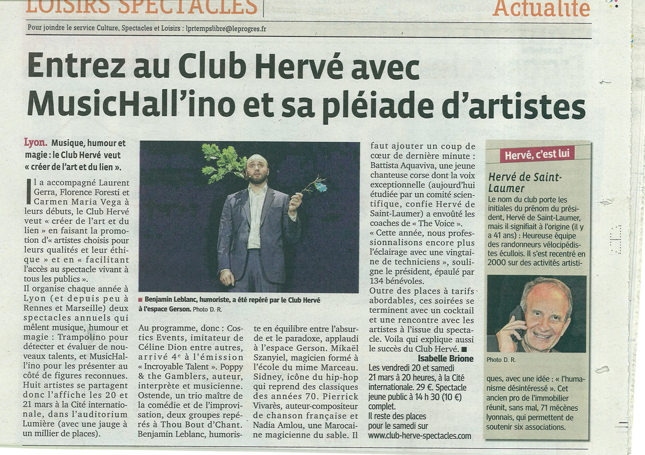 On parle du Club Herve Spectacles de Lyon