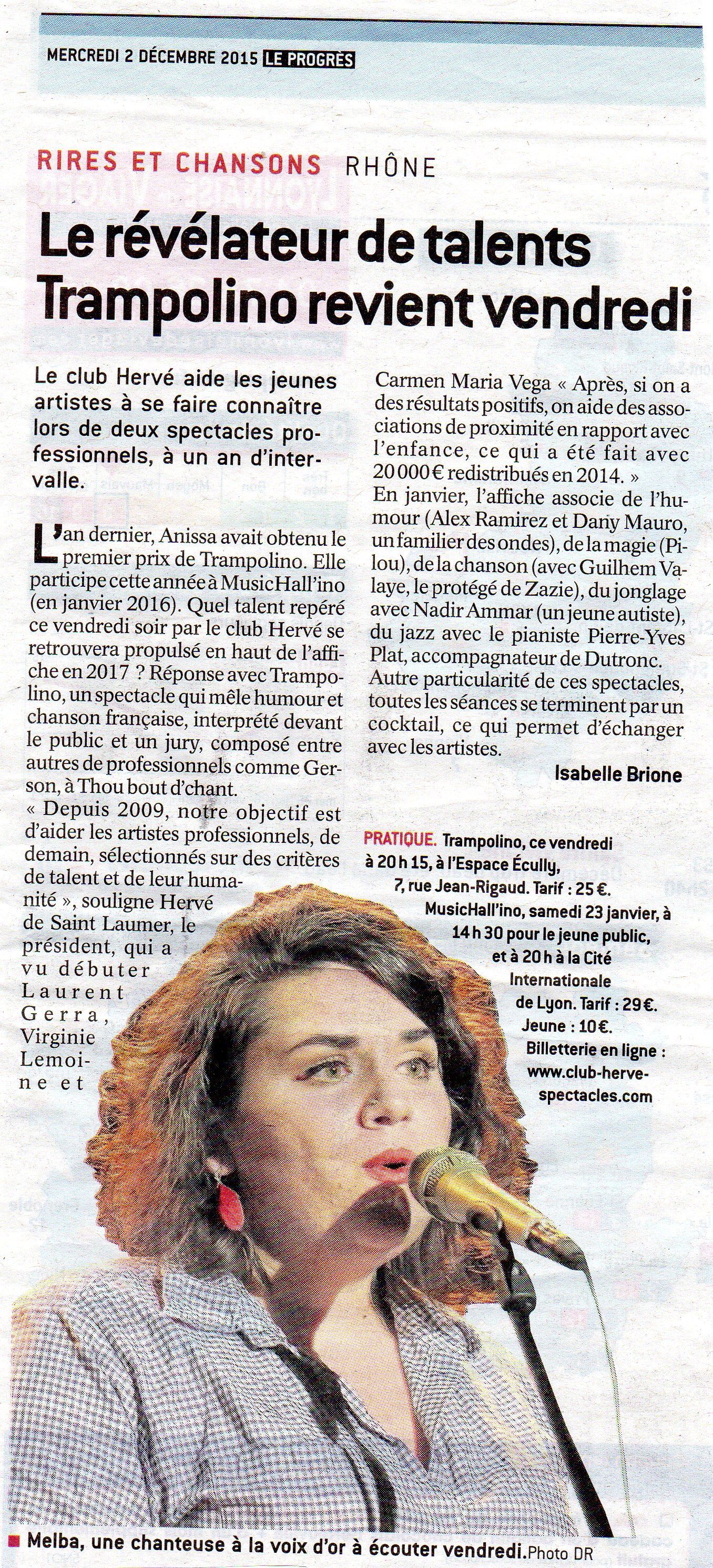 Wed Dec 02 2015 00:00:00 GMT+0100 Le révélateur de talents, Trampolino revient vendredi - Le Progrès