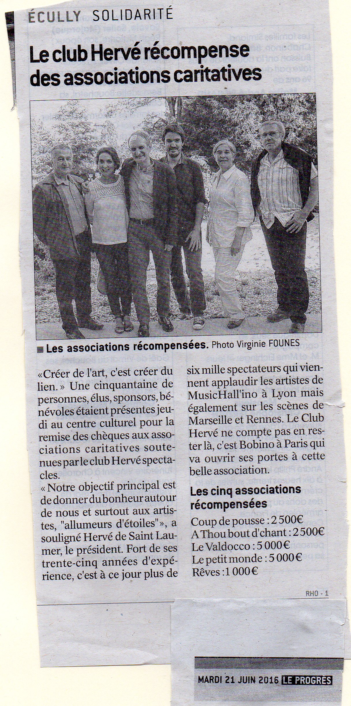 Mon Jun 12 2023 00:00:00 GMT+0200 Le Club HERVE Spectacles verse 4500€ à des associations