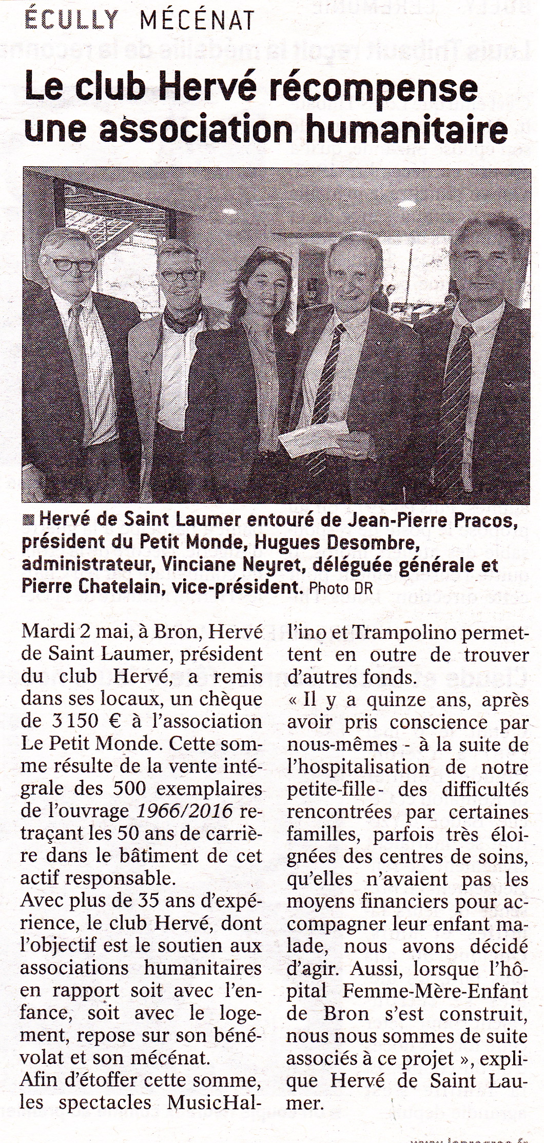 Tue May 09 2017 00:00:00 GMT+0200 Le président du Club HERVE Spectacles remet un chèque à l'Association Le Petit Monde
