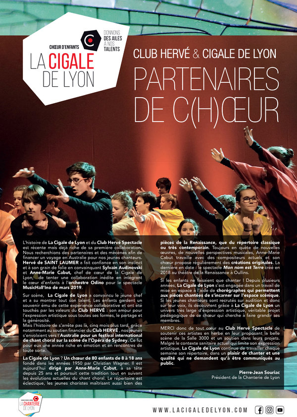 La Cigale de Lyon est un choeur d’enfants sélectionnés parmi les jeunes choristes de la région lyonnaise. Fondée en 1947 par Christian Wagner, elle est dirigée depuis 1995 par Anne-Marie Cabut.