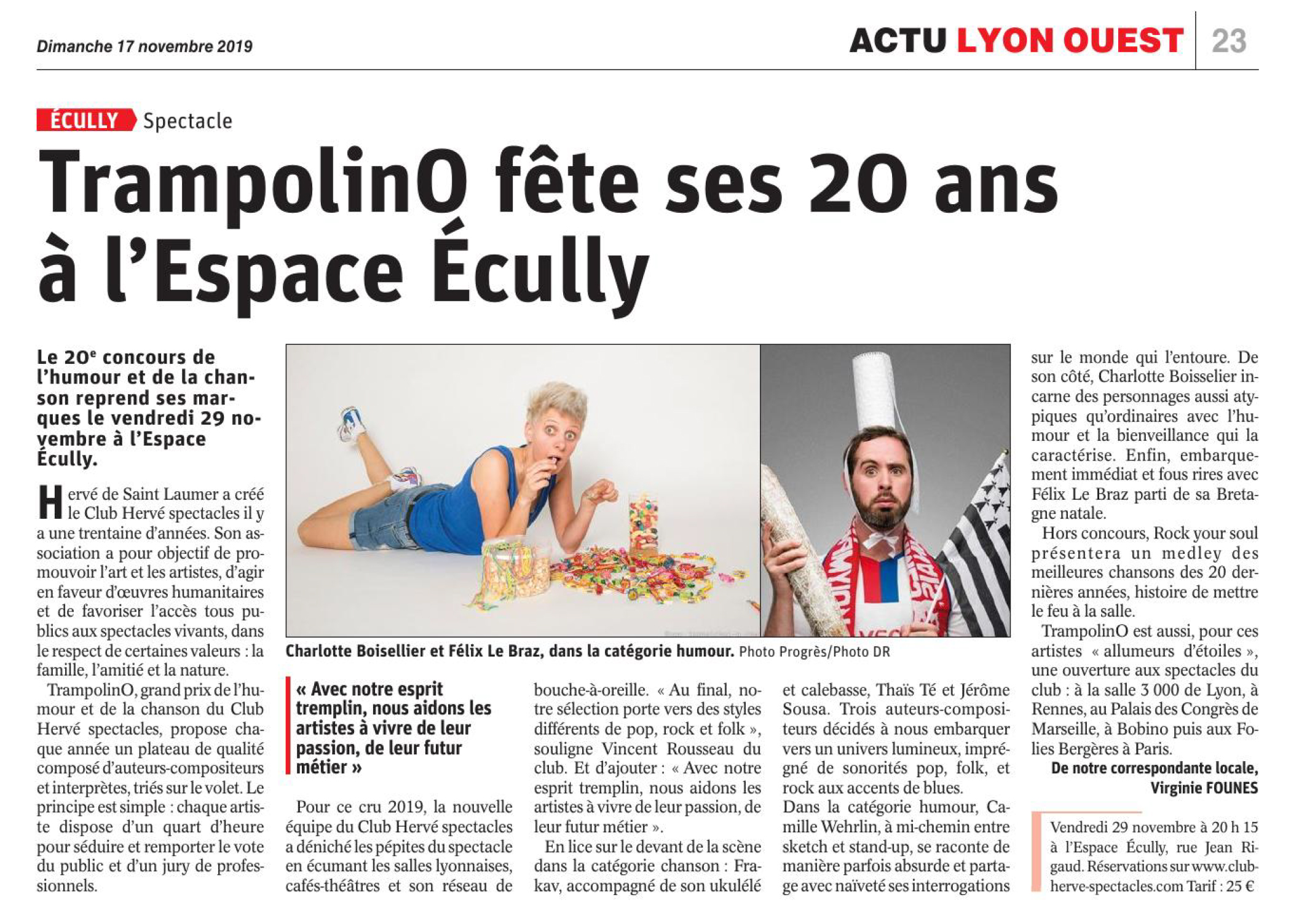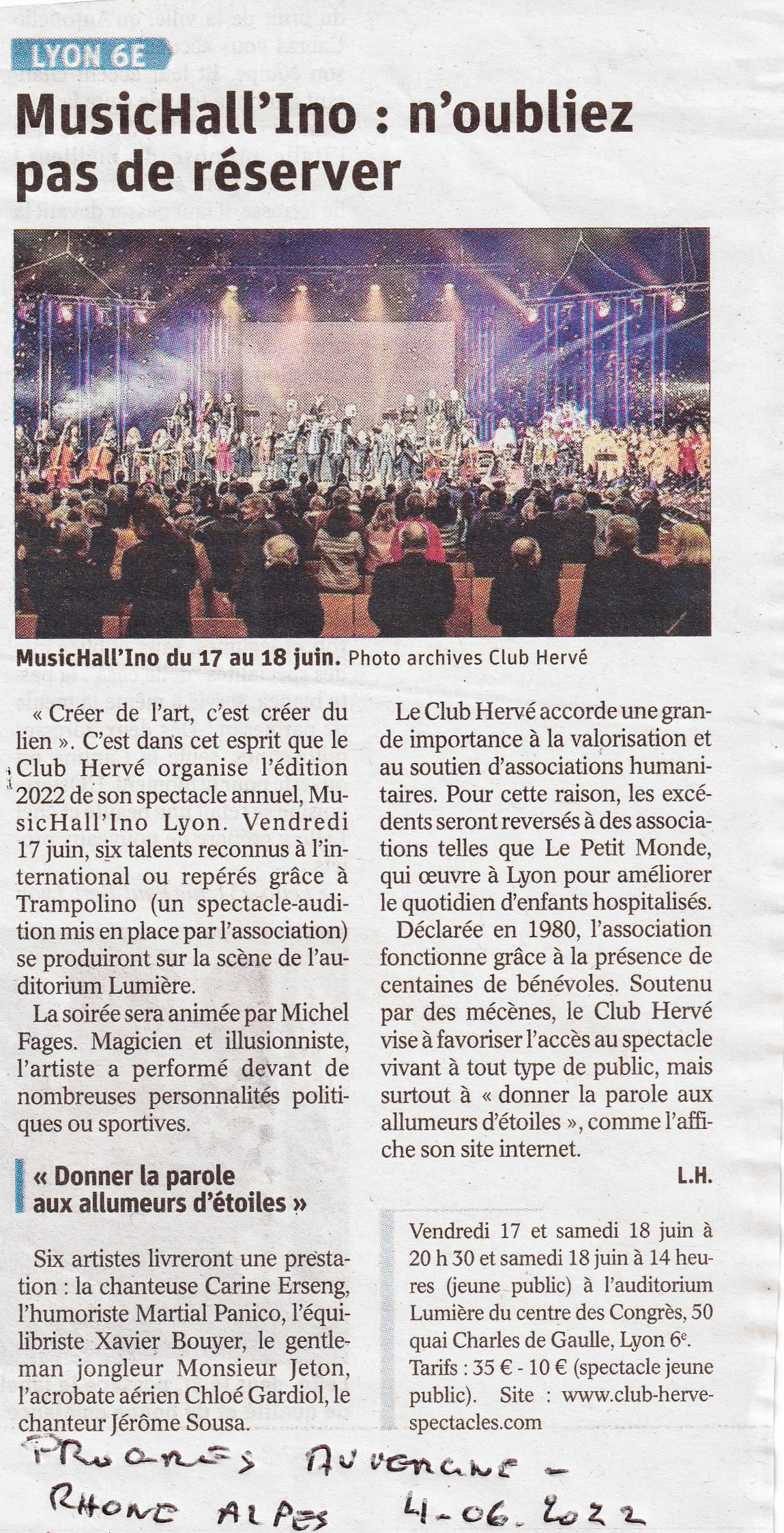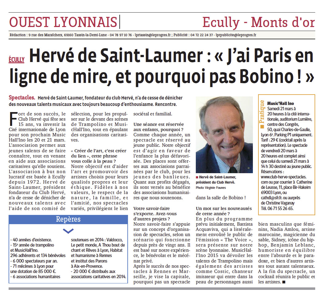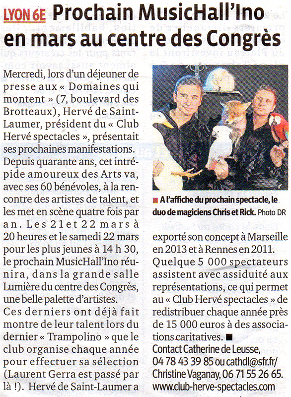 On parle du Club Herve Spectacles de Lyon