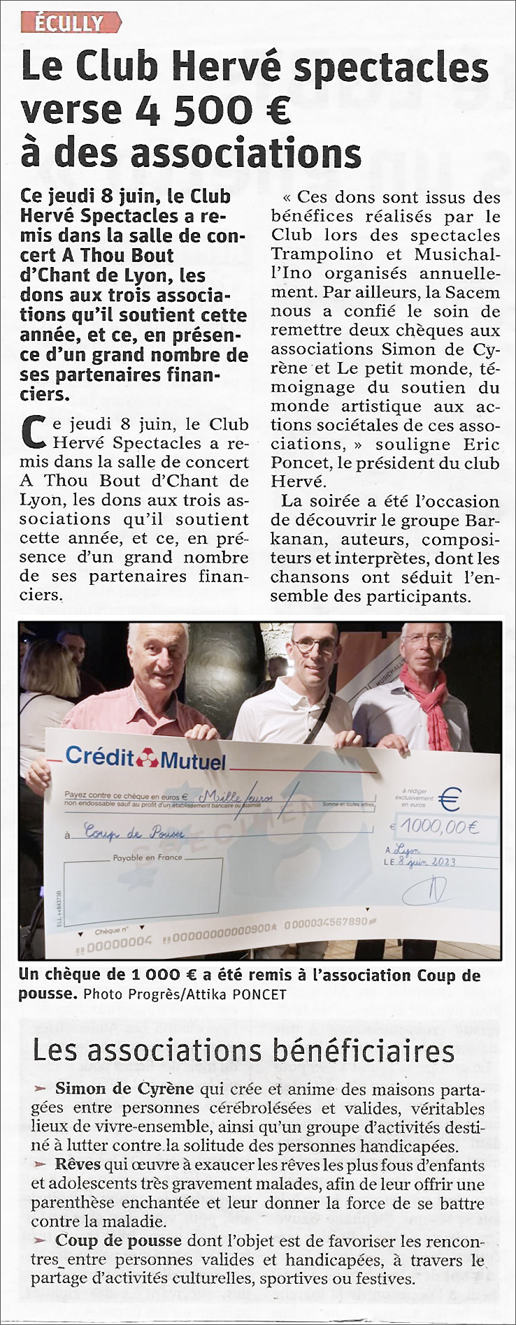 Mon Jun 12 2023 00:00:00 GMT+0200 Le Club HERVE Spectacles verse 4500€ à des associations
