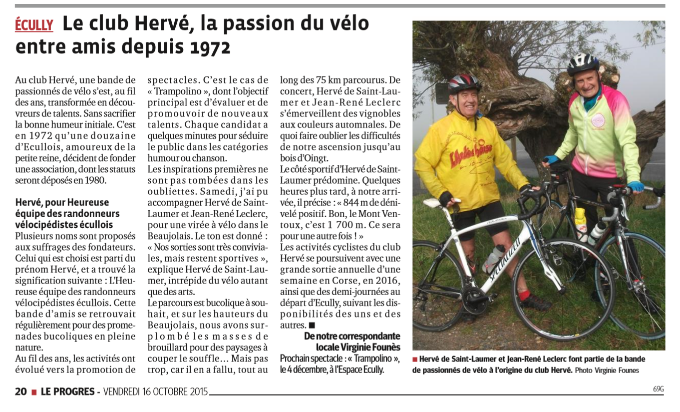 Fri Oct 16 2015 00:00:00 GMT+0200 Le Progrès - Le Club Hervé, la passion du vélo depuis 1972
