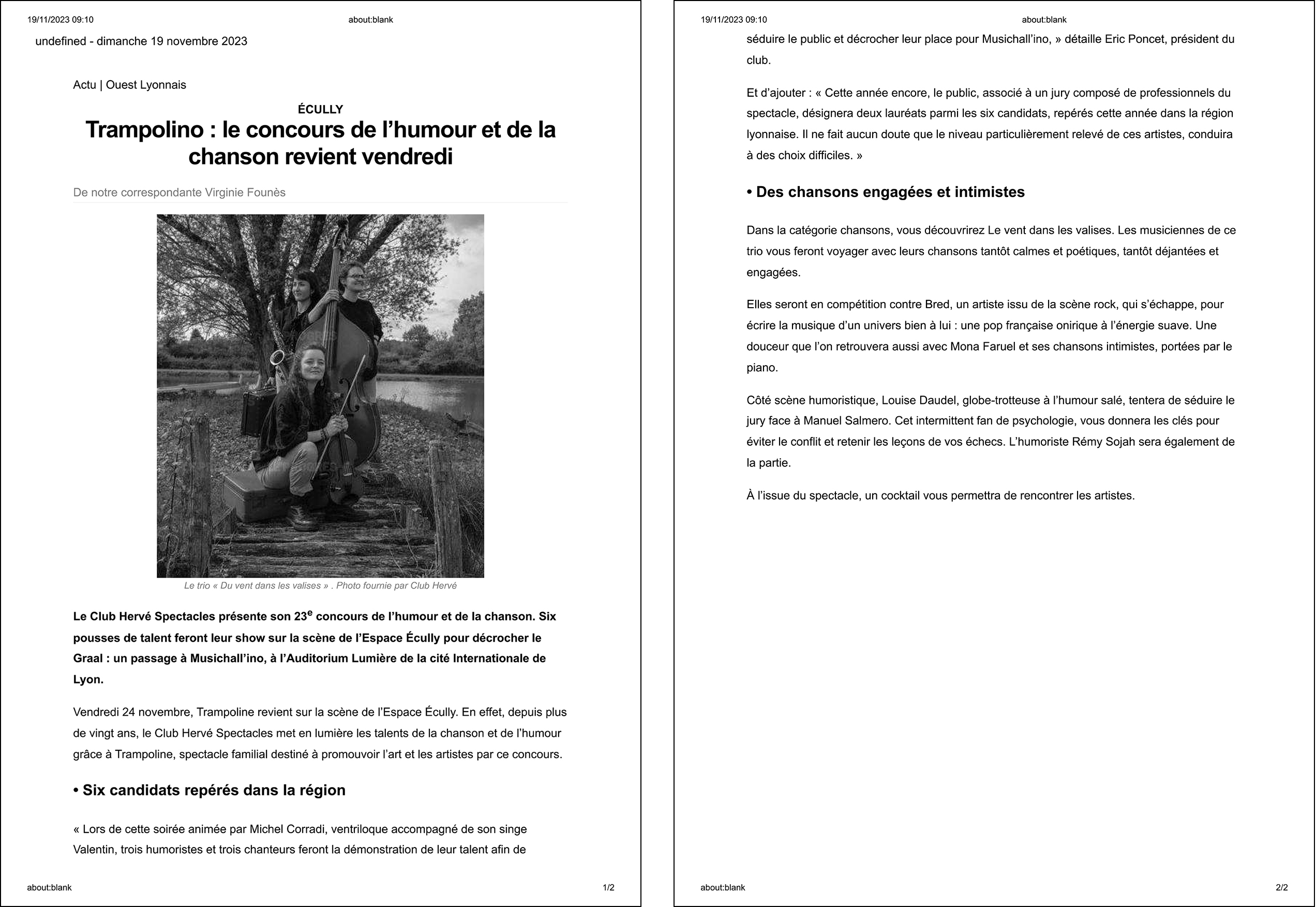 Sun Nov 19 2023 00:00:00 GMT+0100 Trampolino : Le concours de l'humour et de la chanson revient vendredi !