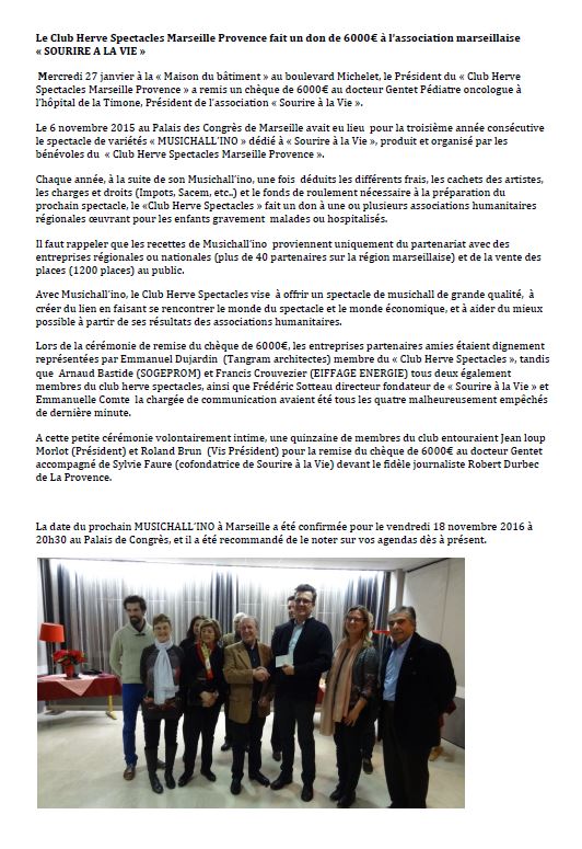 Wed Nov 04 2015 00:00:00 GMT+0100 Une soirée dédiée aux enfants de Sourire à la vie