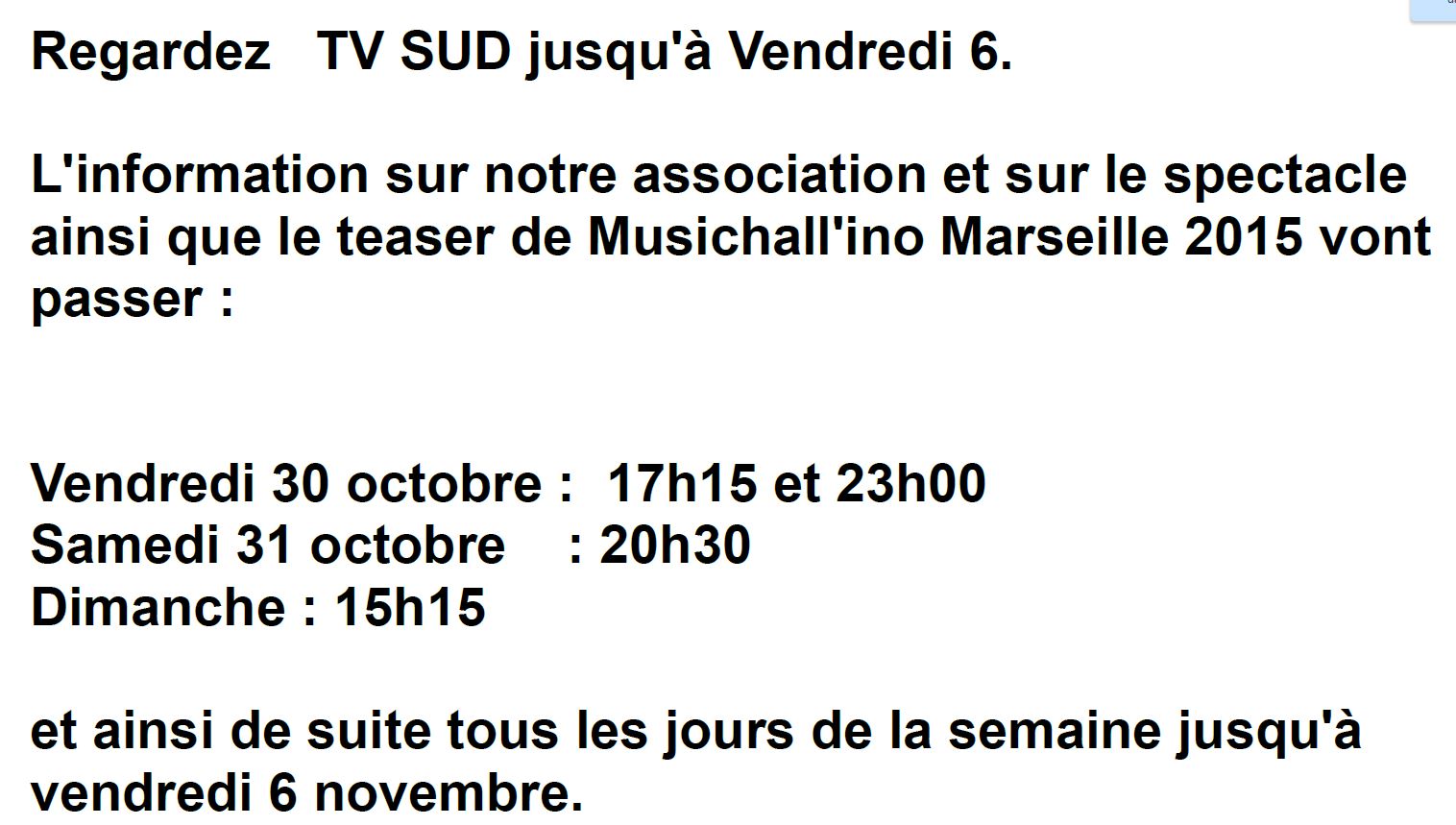 Fri Oct 30 2015 00:00:00 GMT+0100 TV SUD - Marseille 2015